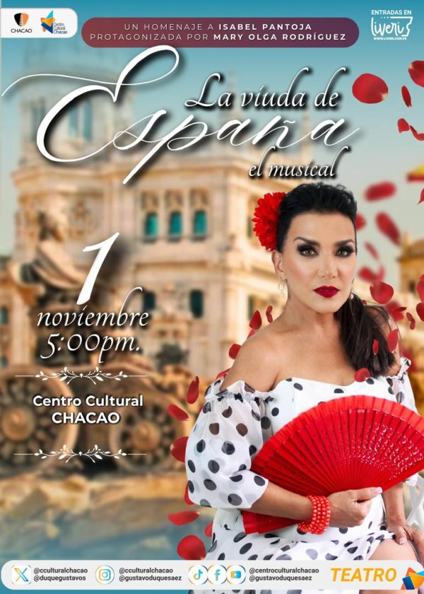 El Centro Cultural Chacao recibirá un evento teatral de alto calibre, el estreno de «La Viuda de España – El Musical», el próximo sábado 01 de noviembre a las 5:00pm.