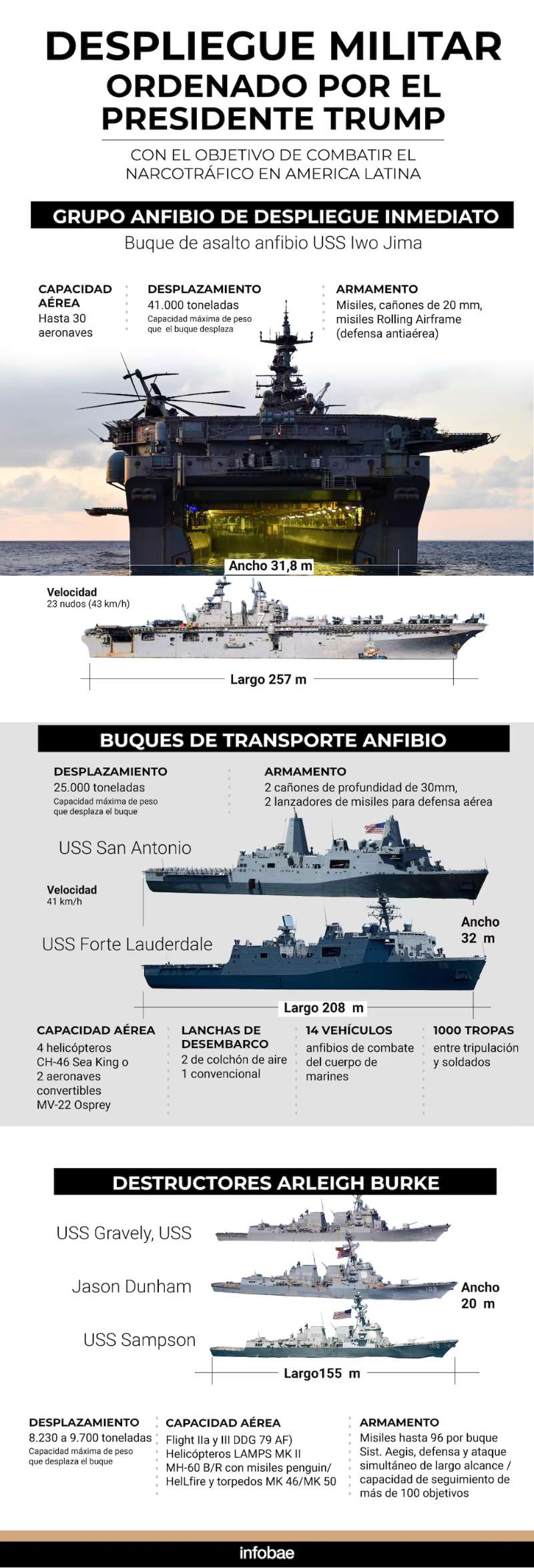 Se trata de la ofensiva más profunda que inició la Casa Blanca para fortalecer la seguridad interna y eliminar al Cartel de los Soles. La flota ha sido desplegada por el Pentágono en aguas internacionales frente a Venezuela, según reseñó Infobae.