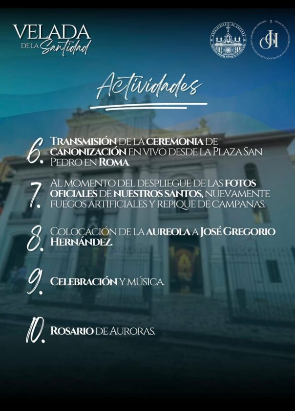 El próximo sábado 19 de octubre, el templo será el epicentro de la fe nacional al acoger la «Velada de la Santidad». Un evento extraordinario para transmitir en pantalla gigante y en directo desde Roma la elevación a los altares de los dos primeros santos venezolanos: San José Gregorio Hernández y Santa Carmen Rendiles. La jornada de vigilia comenzará a las 12:00 am.