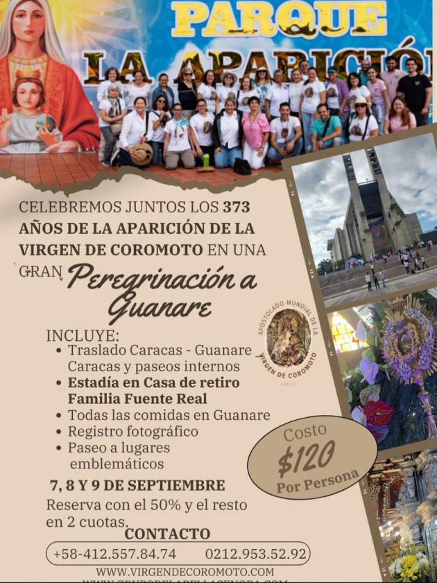 Si desea mayor información para sumarse a la peregrinación de Caracas, puede consultar la cuenta de instagram de @bellaseñoradecoromoto y @apostoladovirgendecoromoto